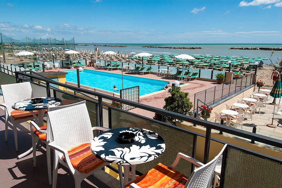 La maggior parte delle camere dell’Hotel Apollonia di Lido di Savio dispongono di balcone con vista sulla piscina, sulla spiaggia privata e sul mar Adriatico.